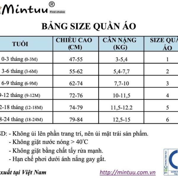 | Mintuu là một trong những thương hiệu quần áo và phụ kiện sơ sinh cao cấp của Việt Nam, có mặt trên thị trường từ năm 2007. Các sản phẩm của Mintuu được sản xuất với mong muốn đem lại sự an toàn, thoải mái cho bé cũng như sự an tâm tuyệt đối cho mẹ. Do vậy chất lượng sản phẩm là yếu tố được quan tâm hàng đầu, các nguyên liệu và phụ liệu may mặc luôn được lựa chọn và kiểm tra kỹ, quá trình sản xuất được giám sát chặt chẽ bởi các bộ phận quản lý, nên mẹ bé có thể an tâm tuyệt đối khi mua các sản phẩm Mintuu cho con mình. |