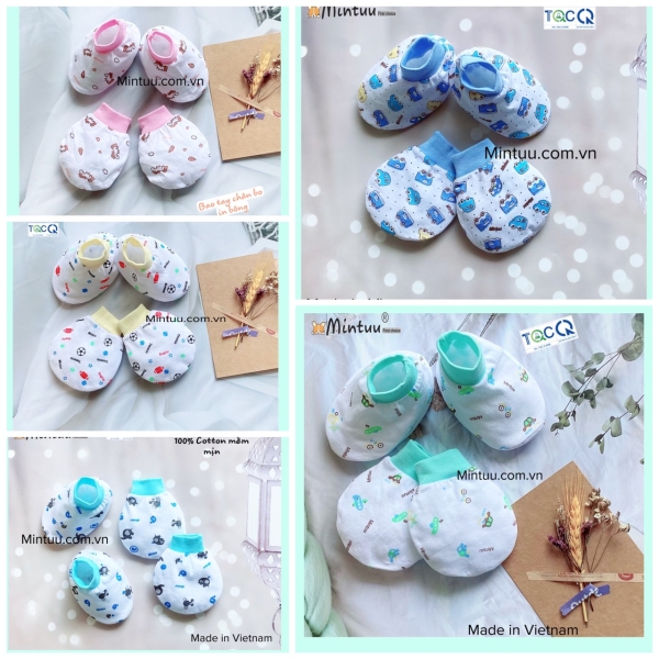 Công dụng: Giữ ấm tay chân cho bé, ngăn không cho bé tự cào xước mặt