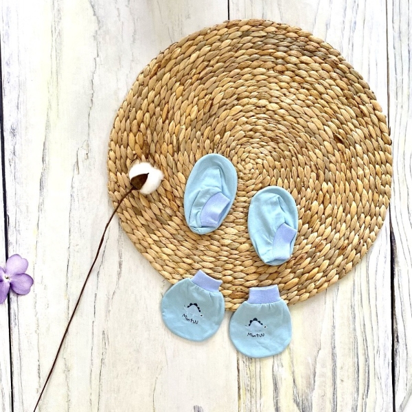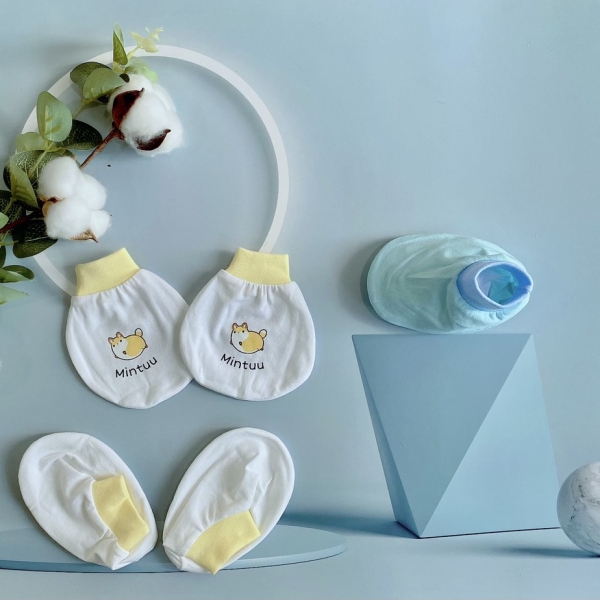 Bao tay chân cho bé sơ sinh cổ bo vải cotton 4 chiều MINTUU