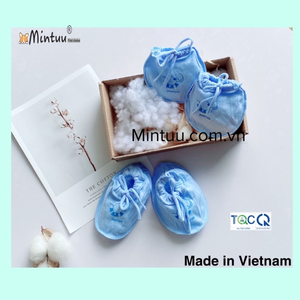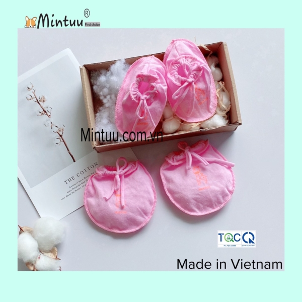 Bao tay chân cột dây màu cho bé MINTUU vải 100% cotton