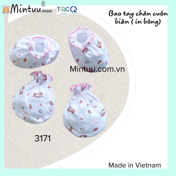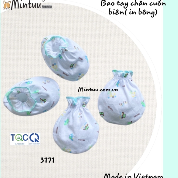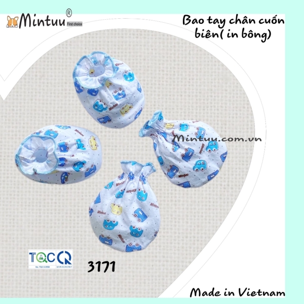 Bao tay chân cuốn biên in bông cho bé sơ sinh MINTUU