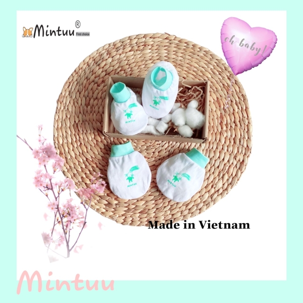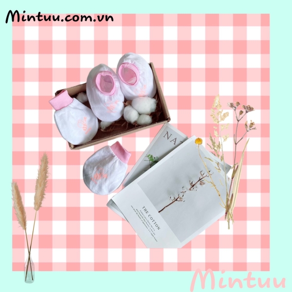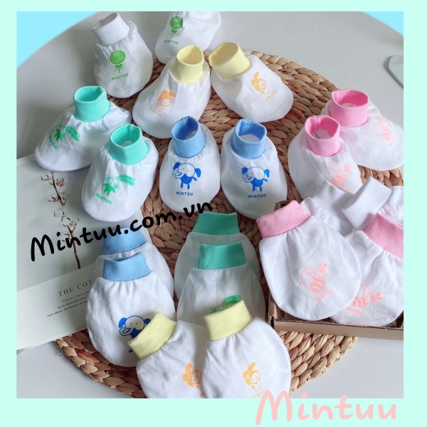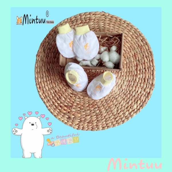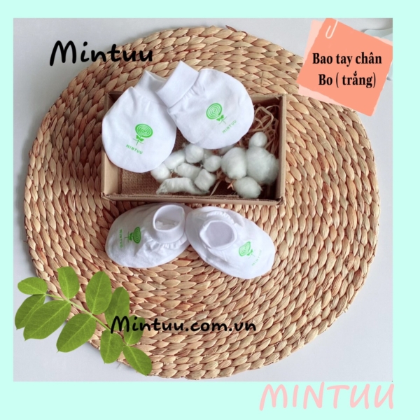 Bộ bao tay chân bo trắng cho bé sơ sinh MINTUU