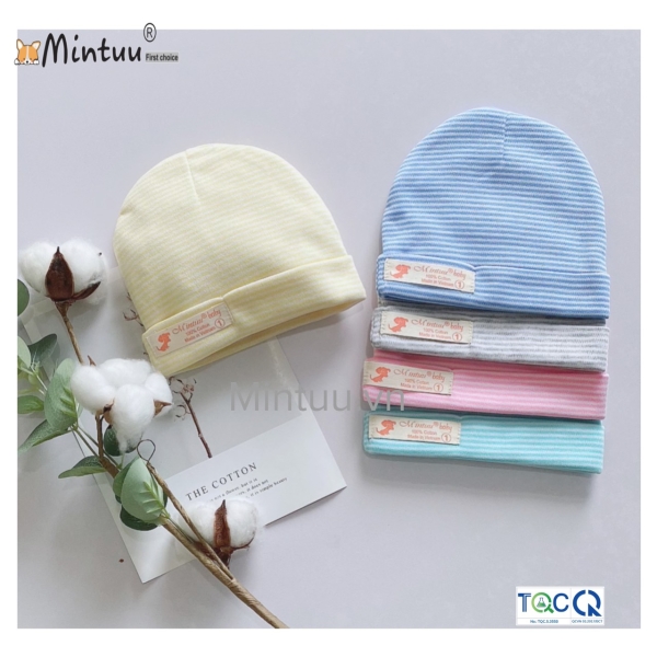 | * Chất liệu: Mũ được sản xuất từ chất liệu vải Interlock sọc màu cao cấp, mềm mại, co giãn tốt, không gây dị ứng cho làn da non nớt của bé. |