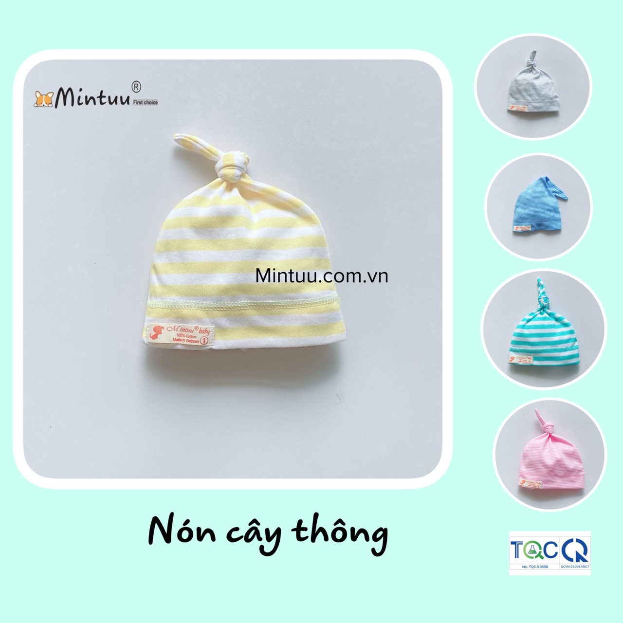 | * Chất liệu: Mũ cây thông được sản xuất từ chất liệu vải Interlock sọc màu cao cấp, mềm mại, co giãn tốt, không gây dị ứng cho làn da non nớt của bé. |