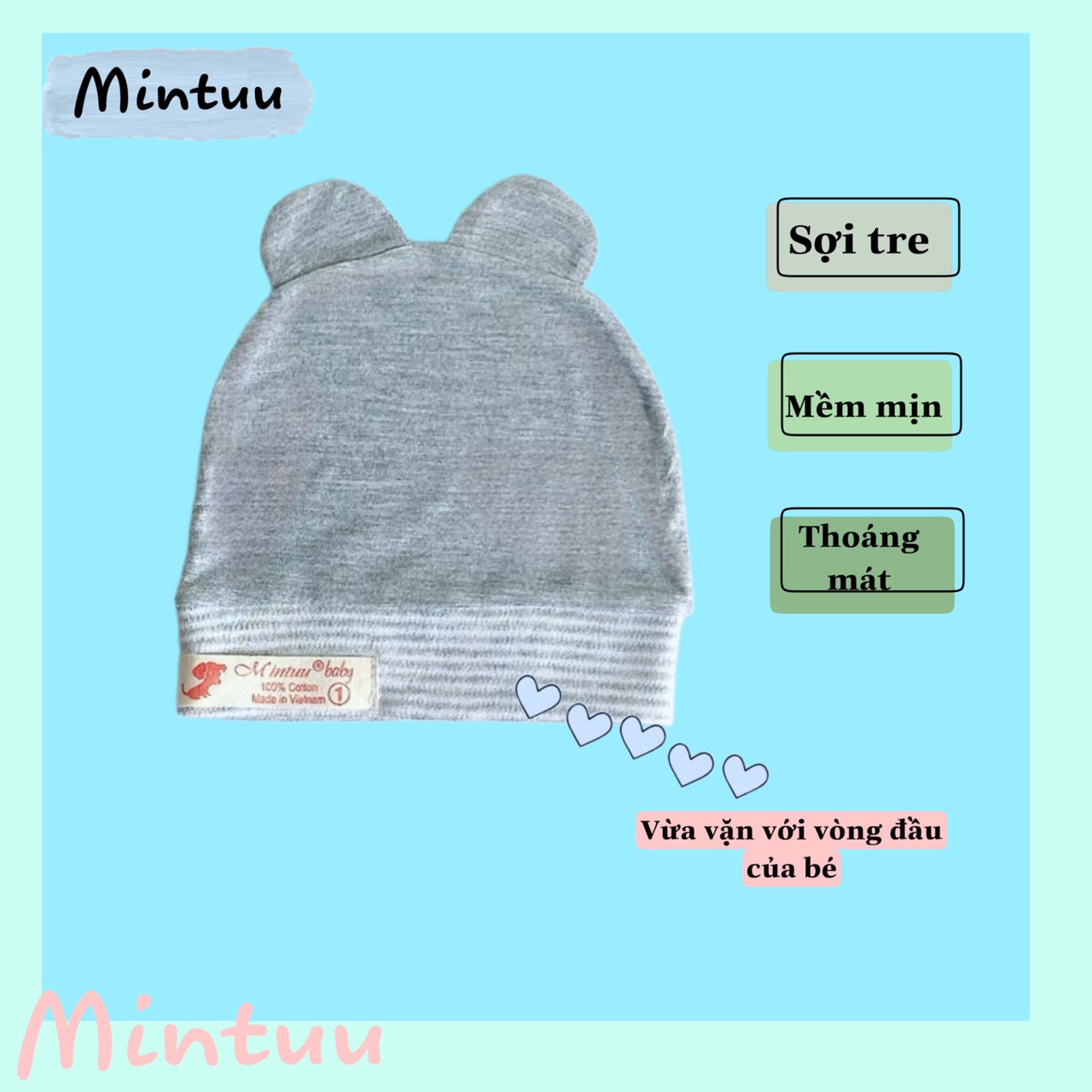 | * Thiết kế: - Mũ cách điệu có 2 tai, viền mũ ôm nhẹ phần đầu của bé, giúp chắn gió cho vùng thóp. |