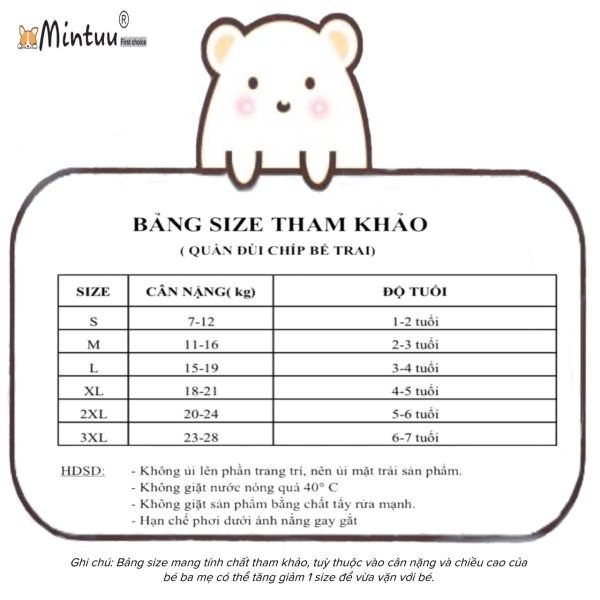 | Mintuu là một trong những thương hiệu quần áo và phụ kiện sơ sinh cao cấp của Việt Nam, có mặt trên thị trường từ năm 2007. Các sản phẩm của Mintuu được sản xuất với mong muốn đem lại sự an toàn, thoải mái cho bé cũng như sự an tâm tuyệt đối cho mẹ. Do vậy chất lượng sản phẩm là yếu tố được quan tâm hàng đầu, các nguyên liệu và phụ liệu may mặc luôn được lựa chọn và kiểm tra kỹ, quá trình sản xuất được giám sát chặt chẽ bởi các bộ phận quản lý, nên mẹ bé có thể an tâm tuyệt đối khi mua các sản phẩm Mintuu cho con mình. |