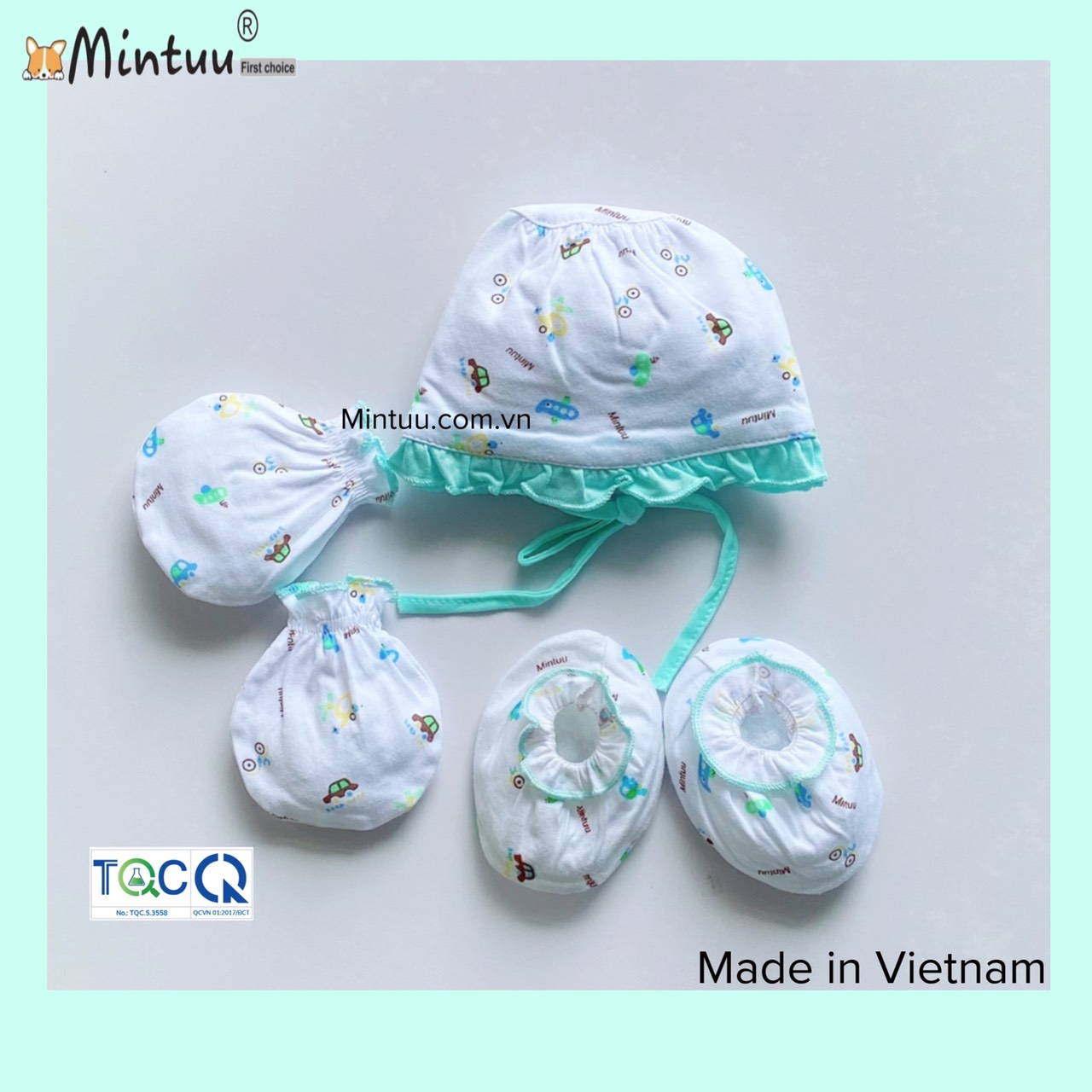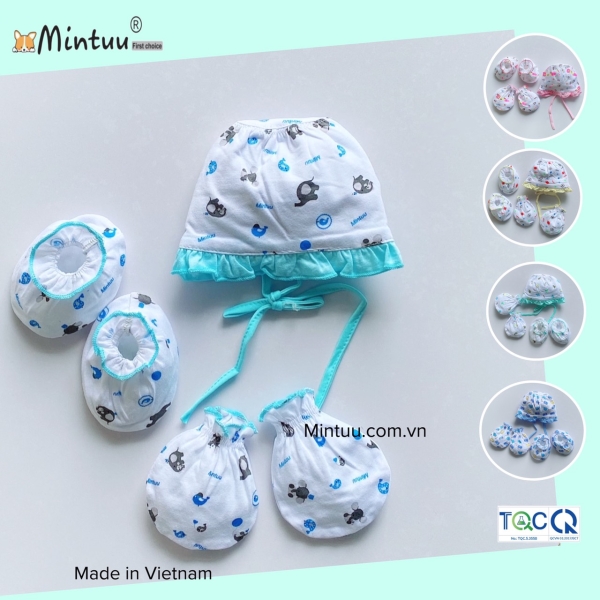 | * Chất liệu: Set mũ - tay chân được sản xuất từ chất liệu vải 100% cotton, mềm mại, co giãn tốt, thấm hút mồ hôi, không gây dị ứng cho làn da non nớt của bé. |