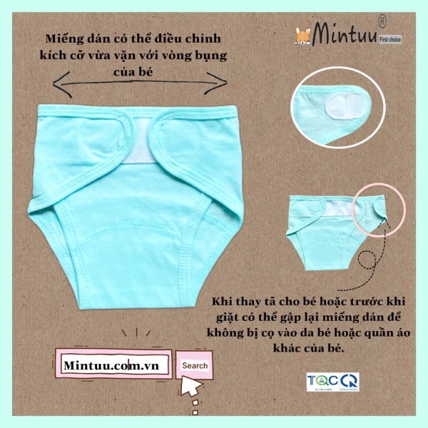 | * Chất liệu: - Tã dán được sản xuất từ chất liệu vải 100% cotton, mềm mại, co giãn tốt, thấm hút, không gây dị ứng cho làn da non nớt của bé. |