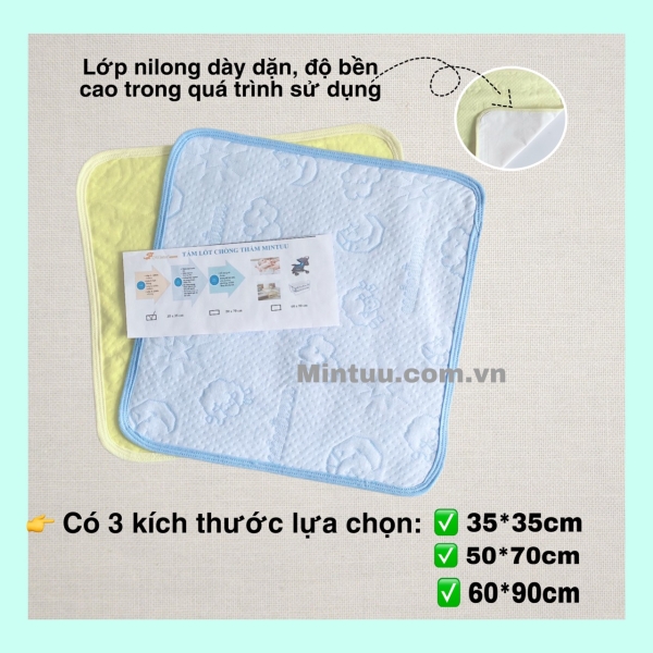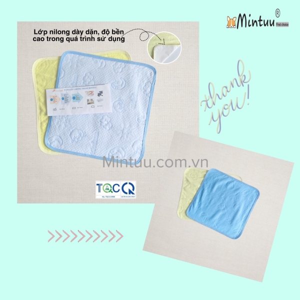 | * Chất liệu: Tấm lót được sản xuất từ chất liệu vải 100% cotton trần bông cao cấp, thấm hút tốt ,không gây dị ứng cho làn da non nớt của bé. |