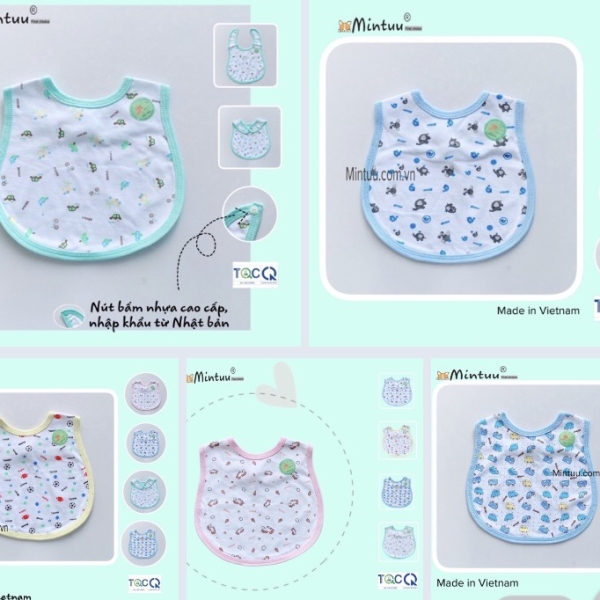 | * Thiết kế: - Yếm được thiết kế 2 lớp, vải 100% cotton mềm mại, co giãn, thấm hút tốt. | |||||