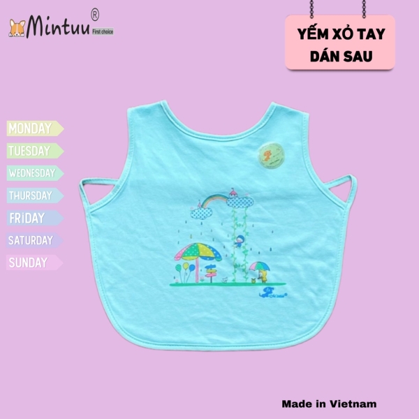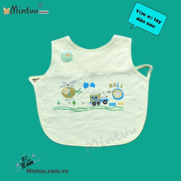 | - Thân yếm lớn như một chiếc áo và thiết kế có hai dây xỏ hai tay vào, miếng dán sau lưng, nên yếm che được toàn bộ phần ngực và bụng của bé, giữ cho quần áo bé luôn sạch sẽ mỗi khi ăn, đồng thời có thể dùng như một chiếc khăn giữ ấm cho bé khi ra ngoài trời | |||||